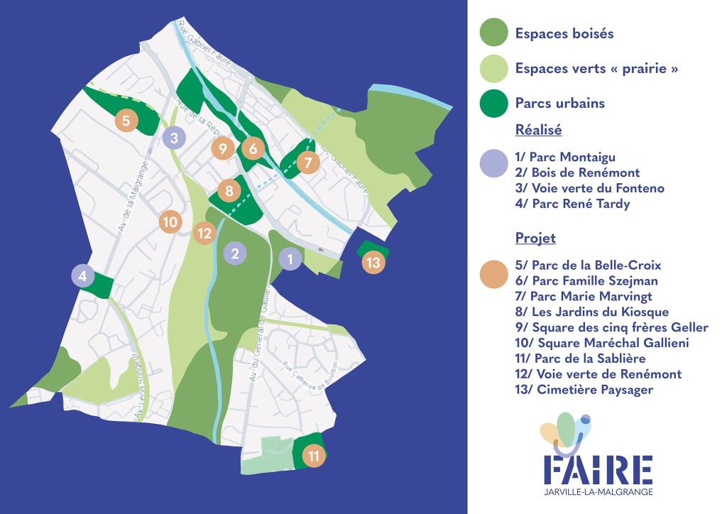 Les Promenades de Jarville continueront à dessiner une ville verte et une ville d’eau, offrant de nouvelles perspectives avec la création de quatre nouveaux parcs : Les Jardins du Kiosque, le Parc de La Belle-Croix, le Parc de La Sablière et le Parc Marie Marvingt.