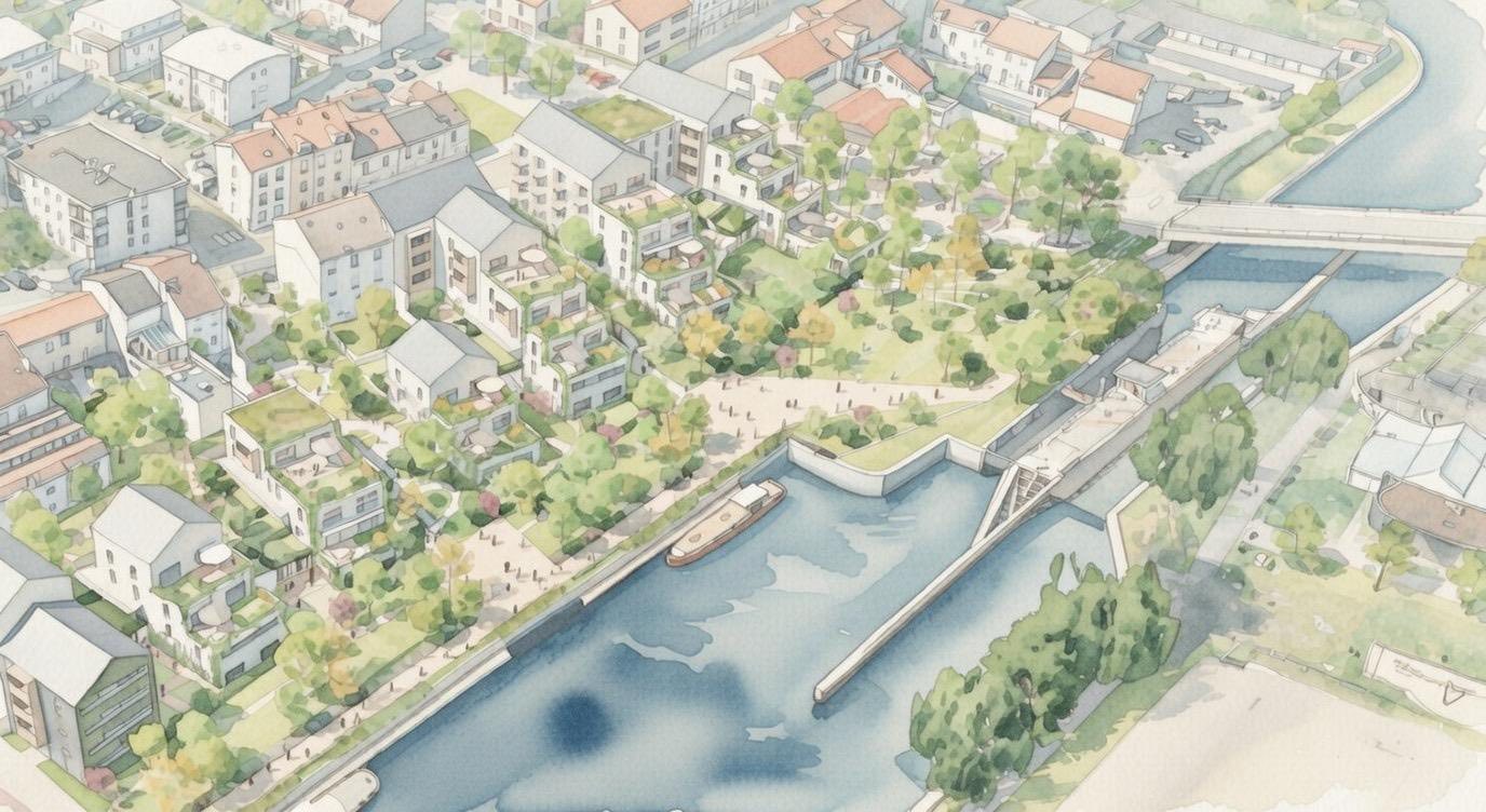 Ce « Coeur de ville » se dessine aujourd’hui entre l’Hôtel de Ville, le Quai de l’Écluse, le Quartier culturel et créatif, la requalification d’ampleur de la rue de la République et sa végétalisation, l’école nouvelle génération Marcelle et Léon Borredon, bordé du canal de la Marne au Rhin et de sa promenade, du parc urbain Famille Szejman, des voies vertes du Fonteno et de Renémont, de la découverte et de la renaturation du ruisseau du Fonteno, de la valorisation paysagère du bois de Renémont et du Domaine de Montaigu.